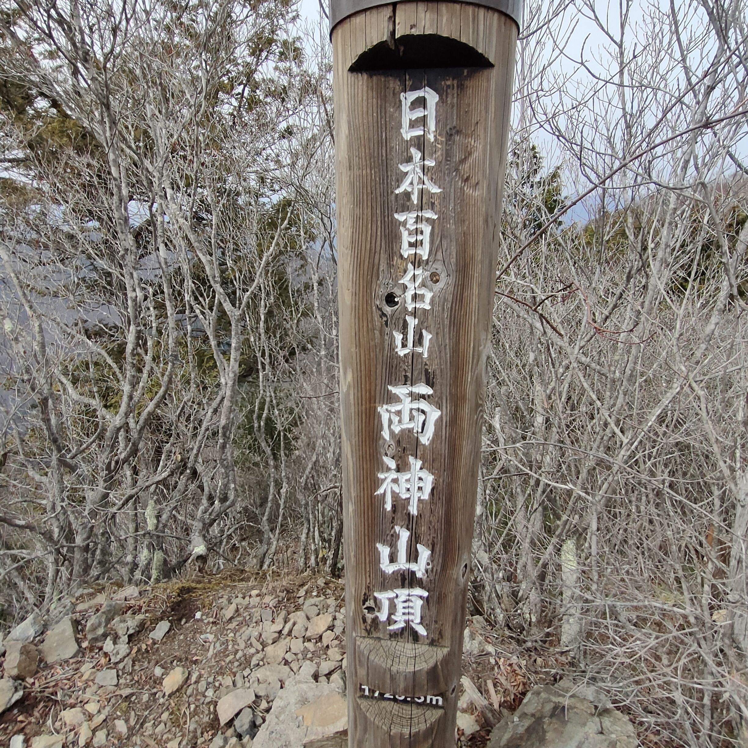 山頂の木製標識の画像